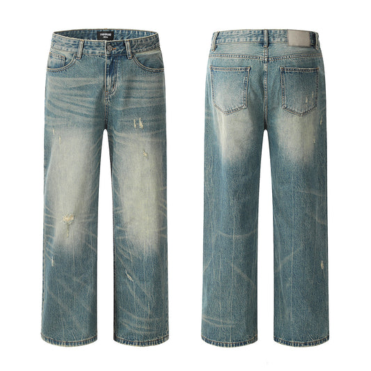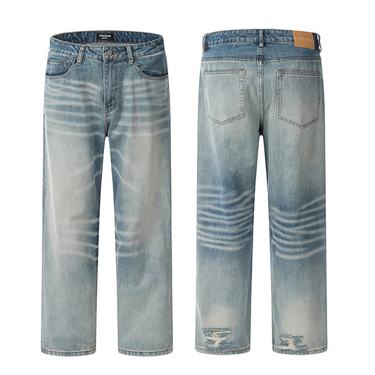 Dusk Blue Multi Button Waist Wash Straight Leg Jeans