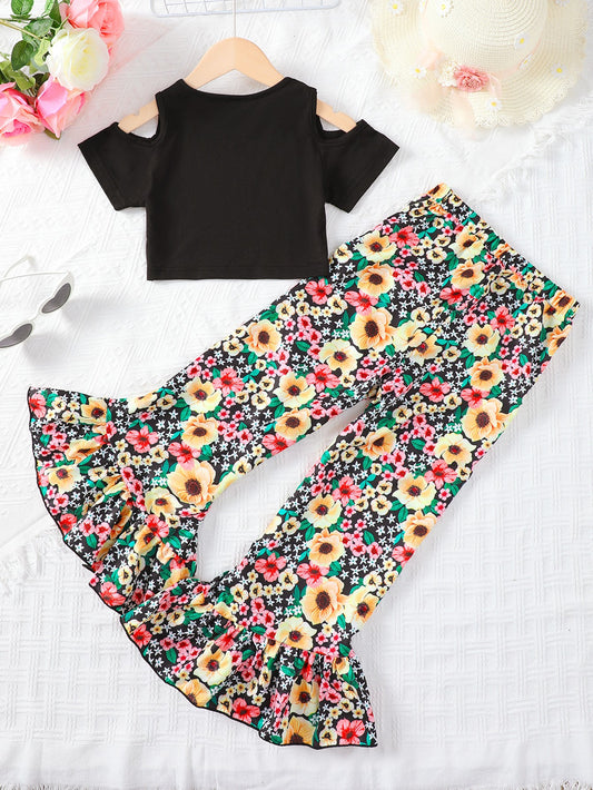 Cold-Shoulder Top and Floral Flare Pants Set