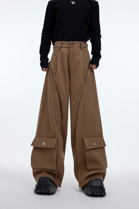 Woolen Metal Embellishment Silhouette Drape Casual Pants
