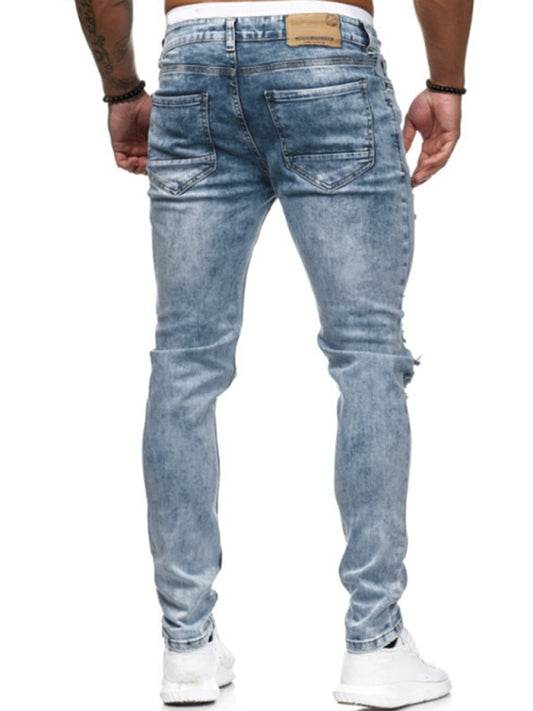 Men's Fashion Mid Waist Ripped Slim Jeans