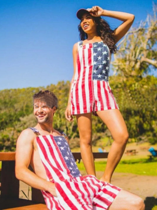 Men's Independence Day Flag Print Couple Overalls