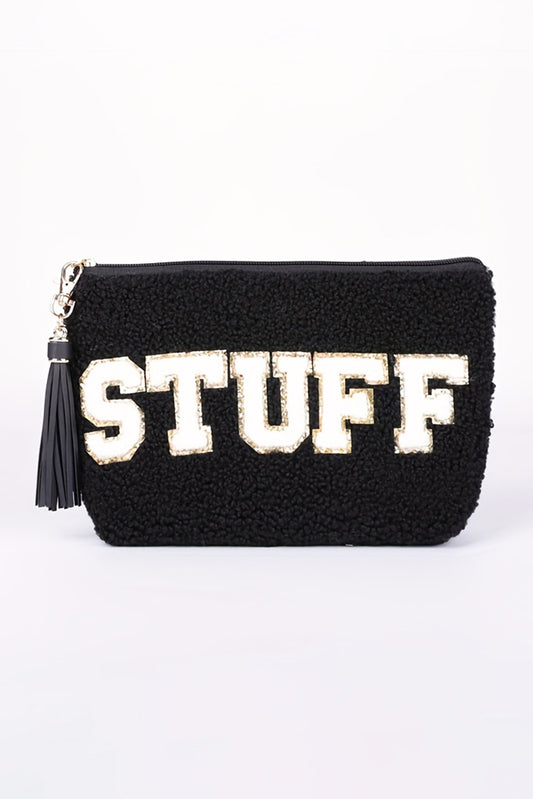 White CALM Letter Pattern Tassel Zipper Makeup Bag