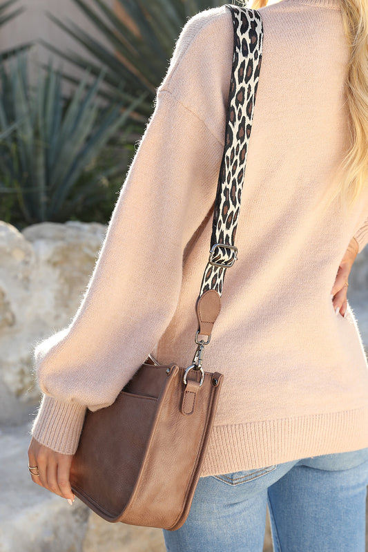 Chestnut Faux Crocodile Leather Leopard Strap Square Bag