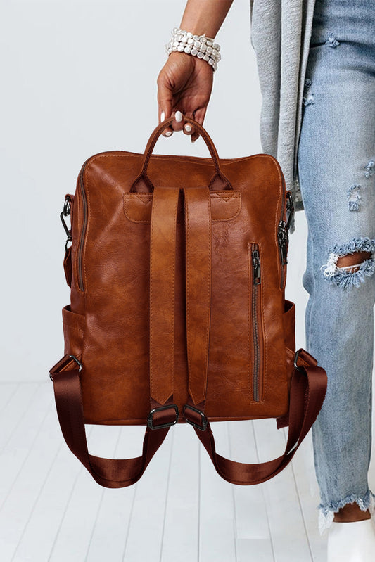 Brown Tassel Decor Retro PU Large Capacity Backpack