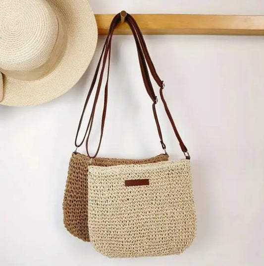 EYS Fashion - Handwoven Straw Rattan Half-Moon Beach Handbag