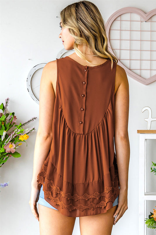 Casual Contrast Lace Crochet Button Back Sleeveless Shirt