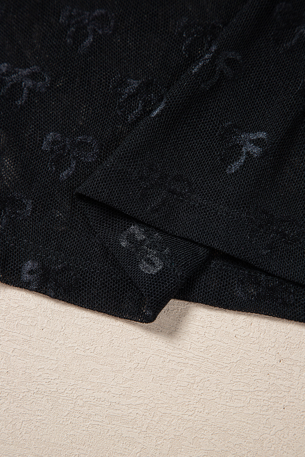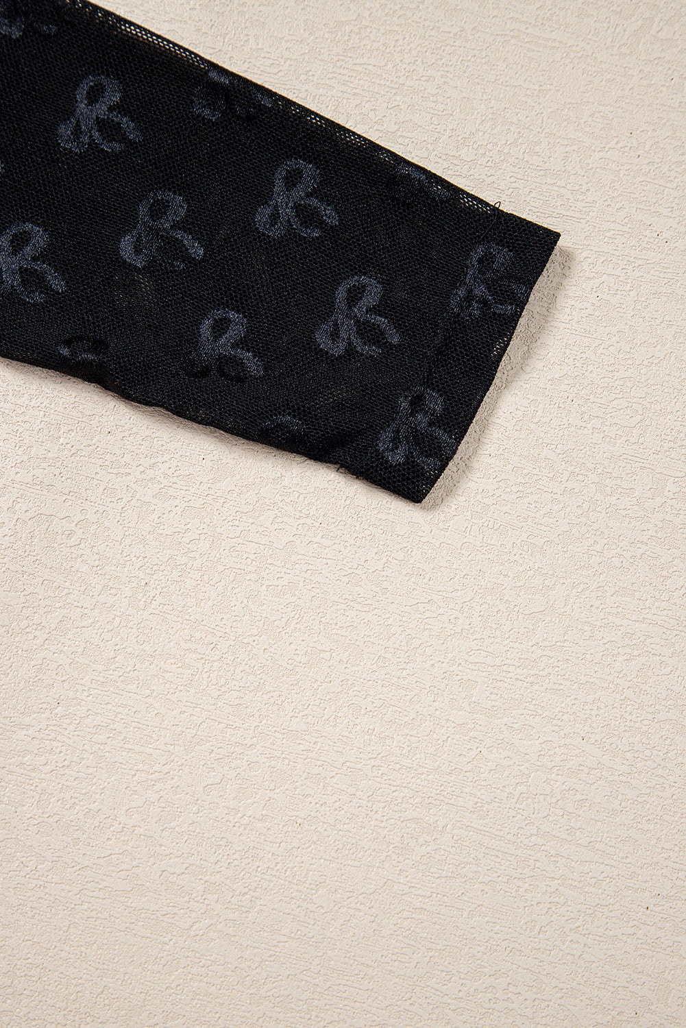 Black Bow Pattern Long Sleeve Slim Fit Mesh Top
