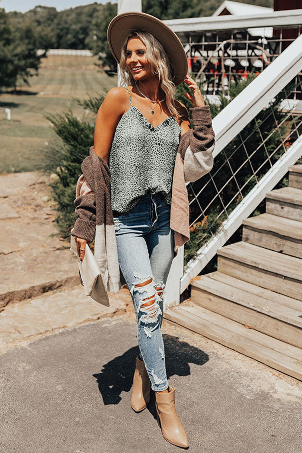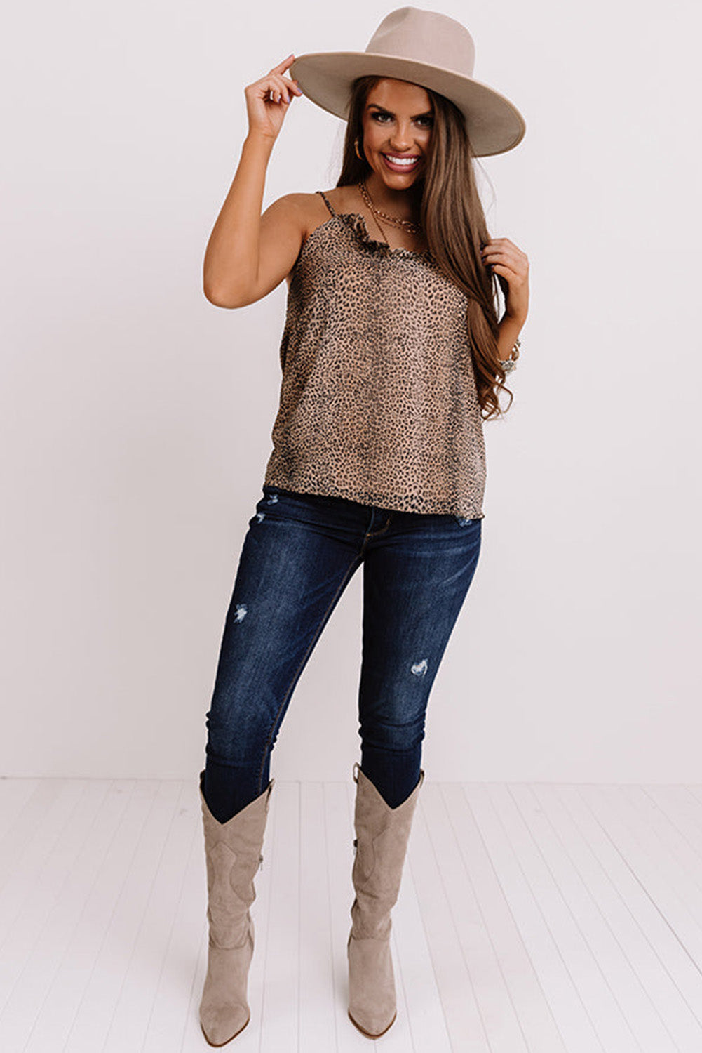Cheetah Sexy Frill V Neck Spaghetti Strap Cami Top