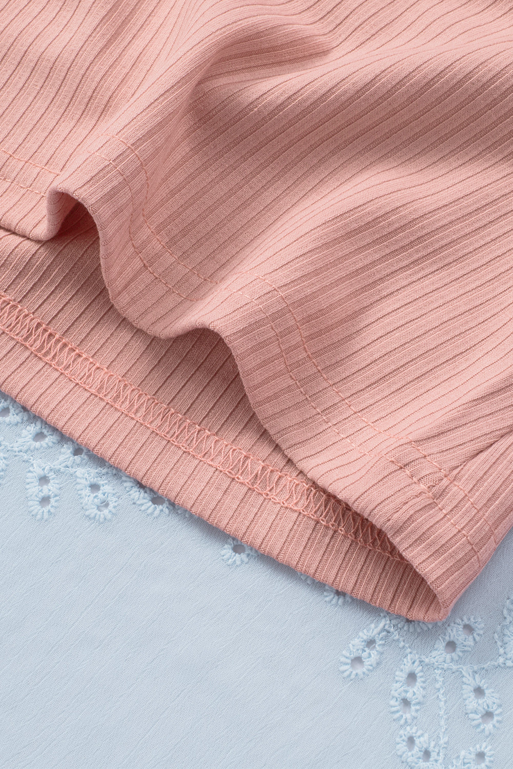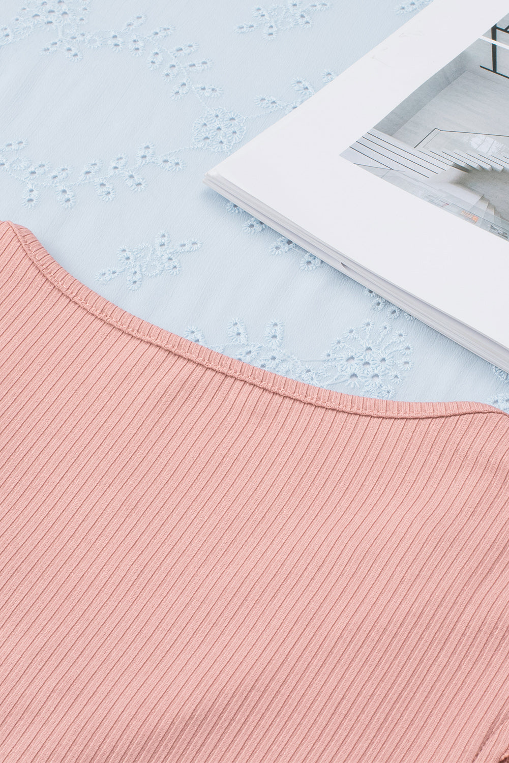 Crochet Cap Sleeve Ribbed V Neck Summer Top