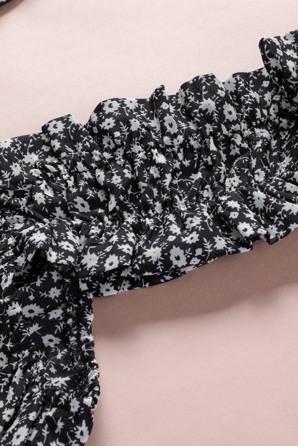 - Finished with a square elasticized neckline and elasticized straps with ruffle trim