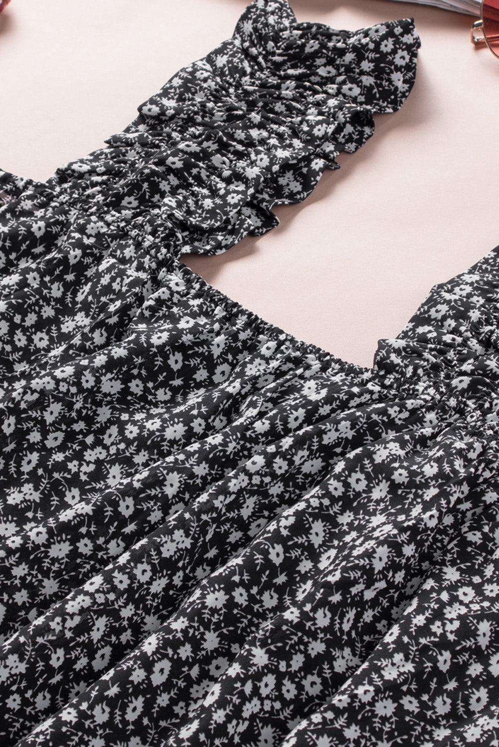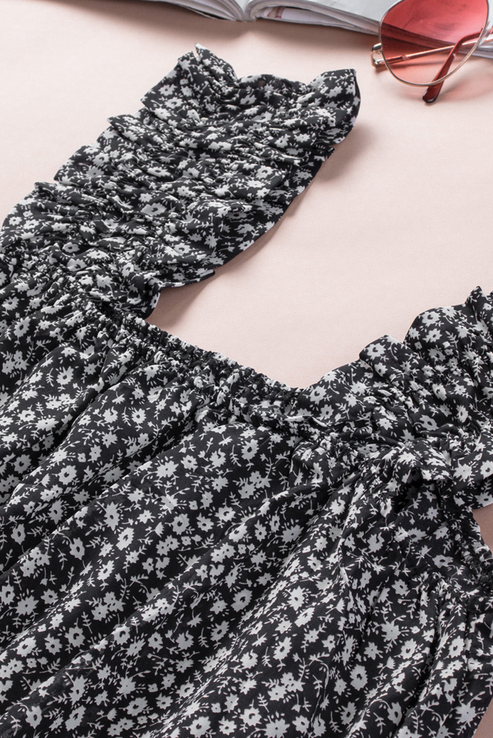 Ditsy Floral Print Ruffle Straps Flowy Boho Summer Top