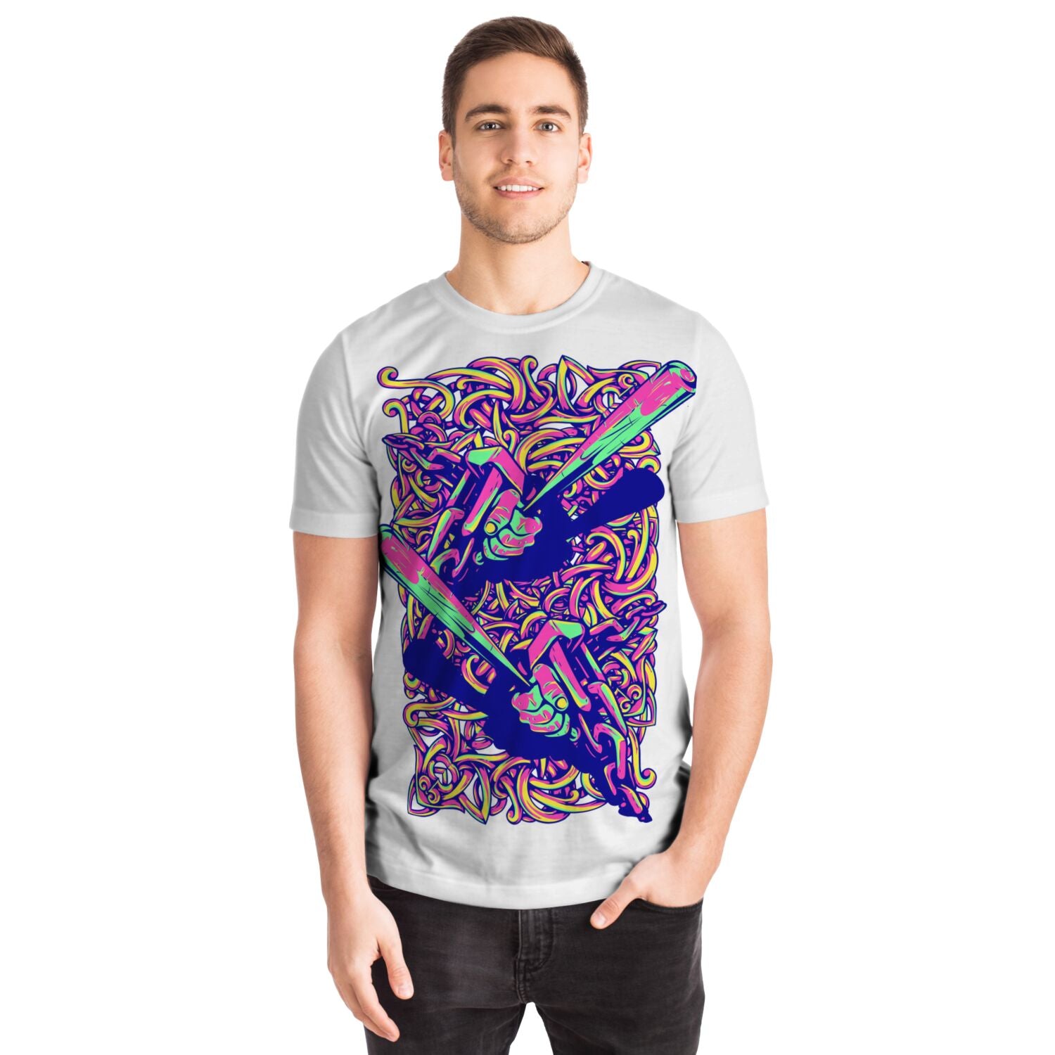 Featuring a crew neck, short sleeves, and a premium 100% polyester fabric with a cotton handfeel, and high definition printing that won't fade after washing.