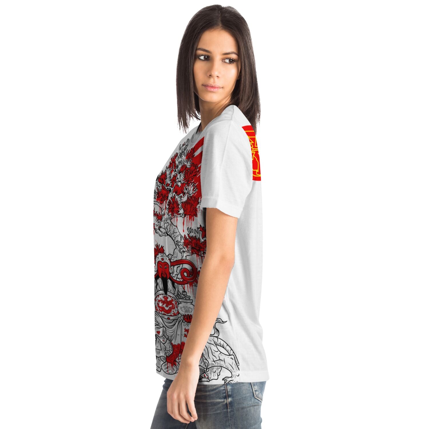 Featuring a crew neck, short sleeves, and a premium 100% polyester fabric with a cotton handfeel, and high definition printing that won't fade after washing.