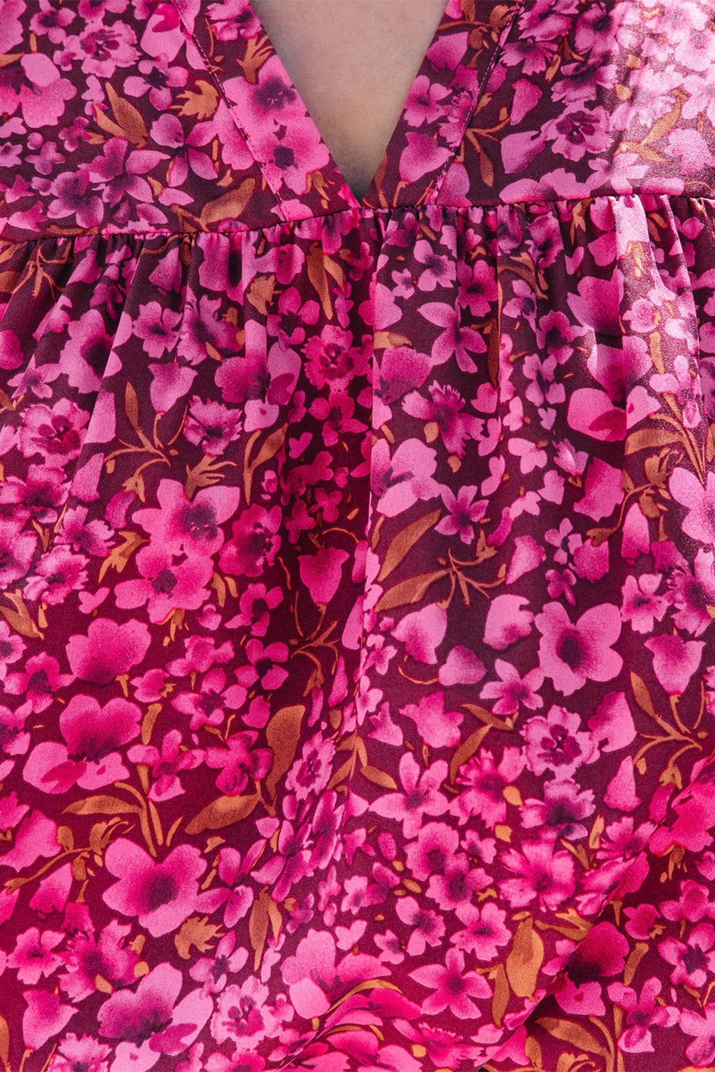 - The delicate floral print and ruffle sleeve details add a touch of femininity and elegance to this top, while the V-neckline and flowy silhouette create a flattering and effortless look. The boho-inspired design makes it a versatile piece that can be dressed up or down depending on the occasion.