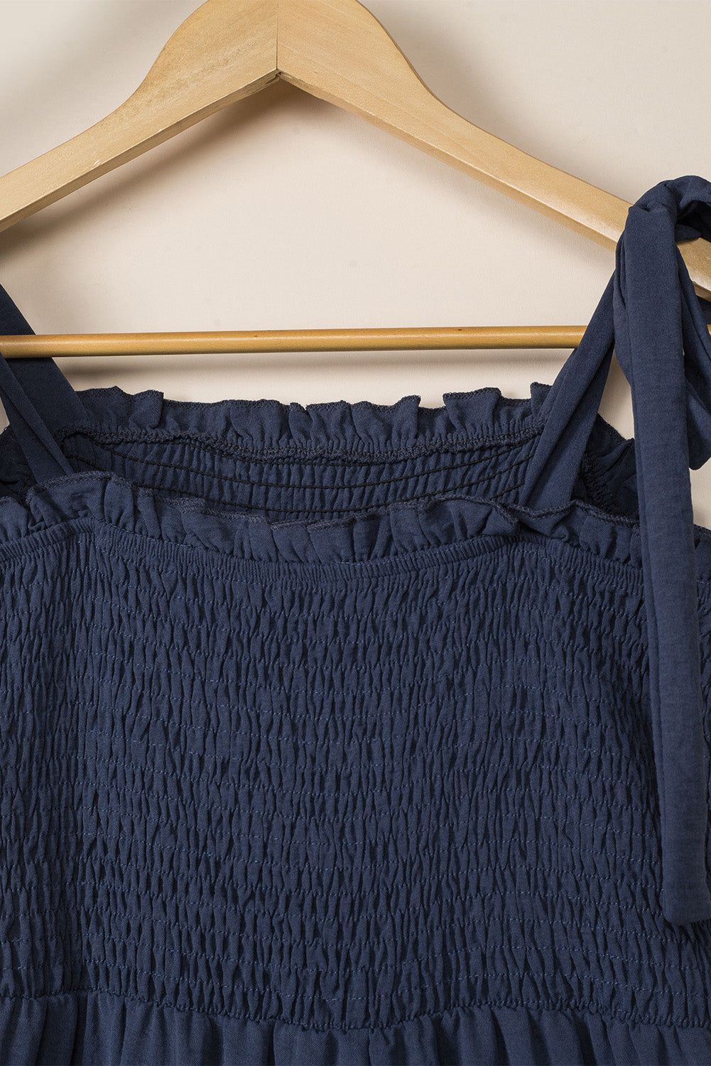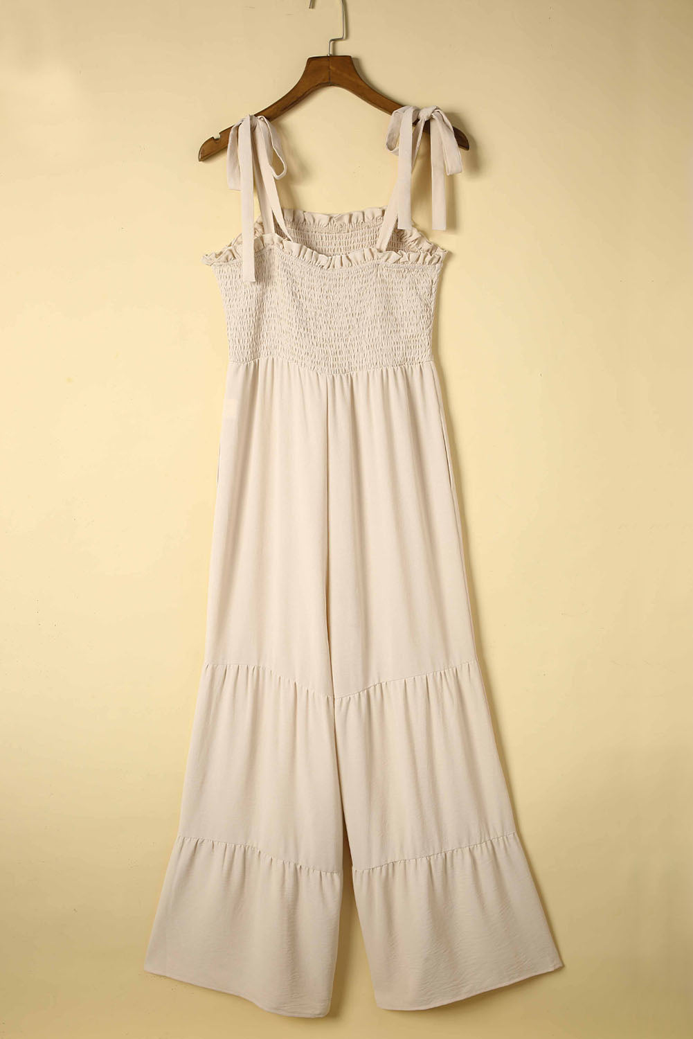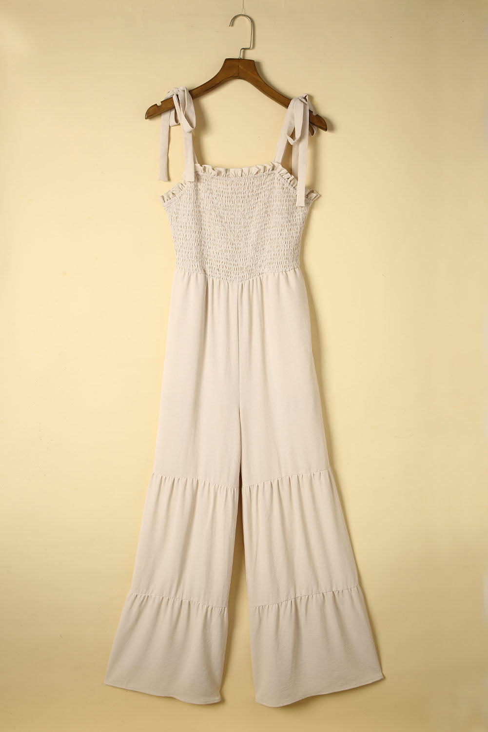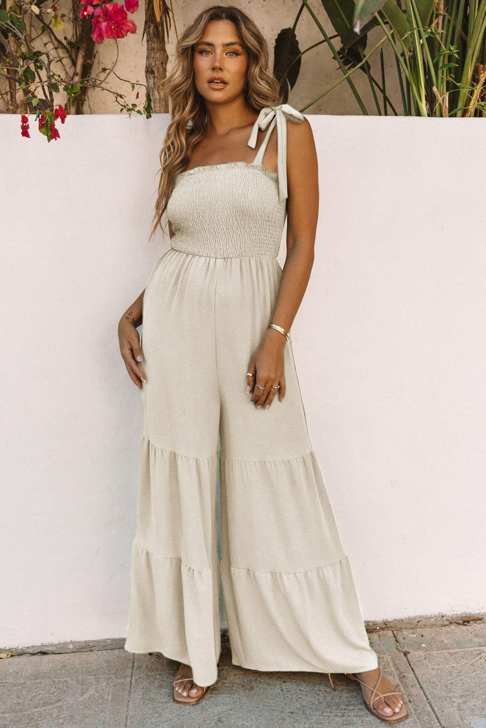 - Tie Straps Shirred Bodice Tiered Wide Leg Jumpsuit is definite to give you a sexy energetic look
