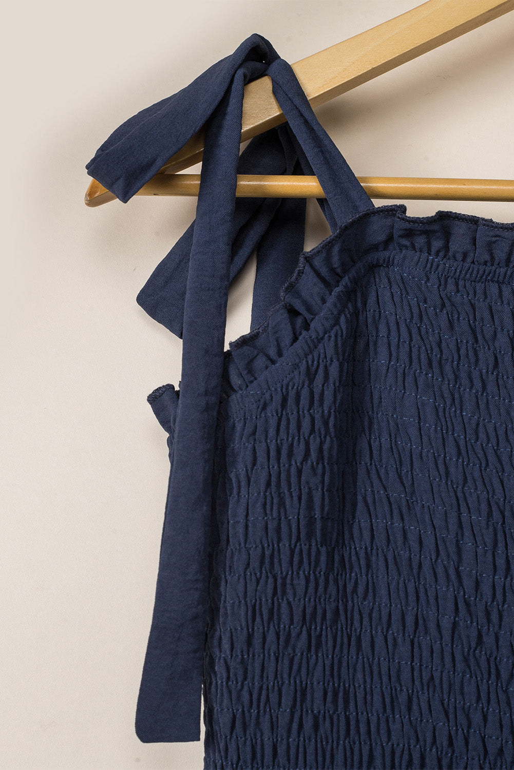 - The tied shoulder design and smocked bodice are sexy and perfect to show off envied collarbones