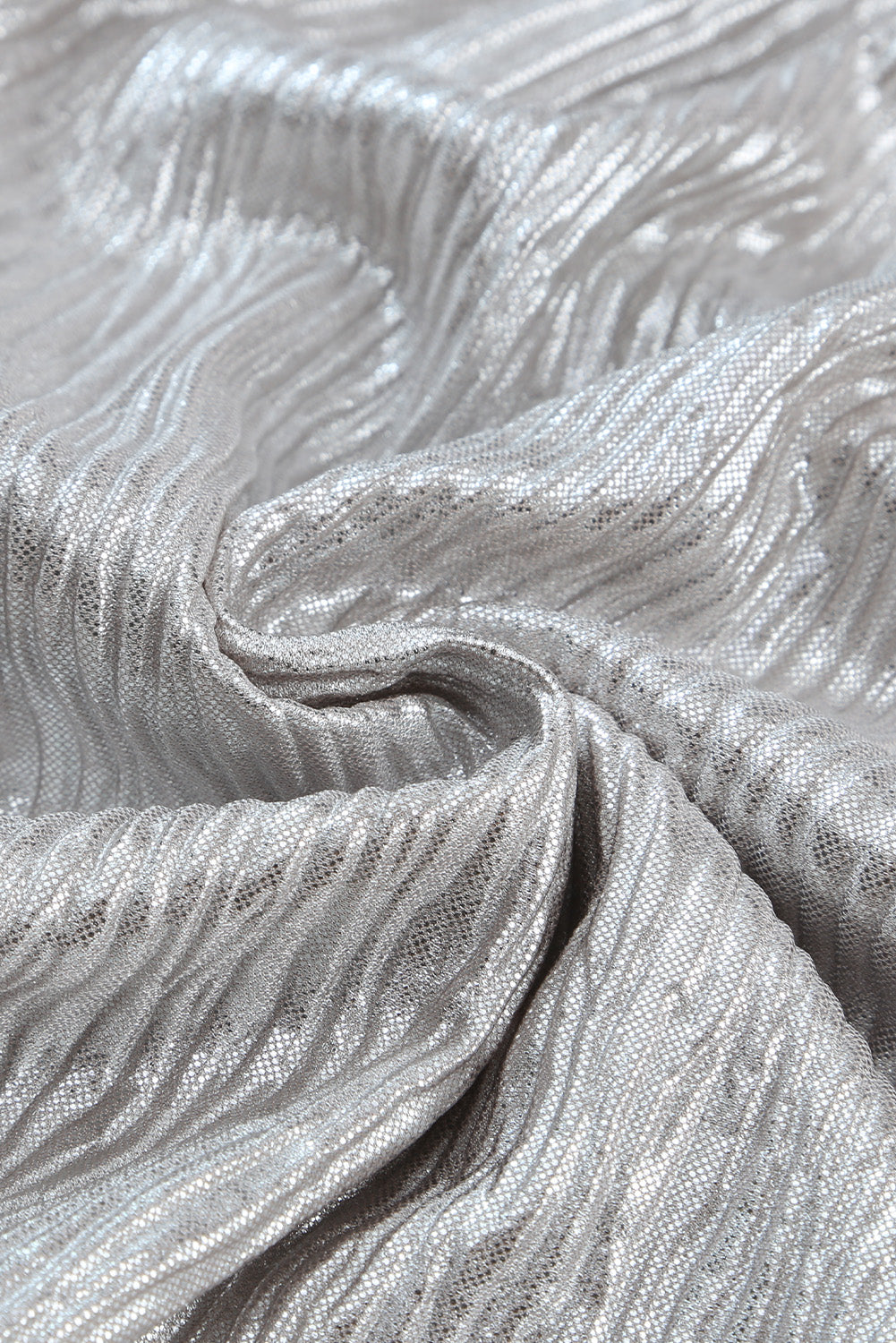 - It has a Metallic color with a metallic crinkle texture and features a feminine V-neckline and frilled details.