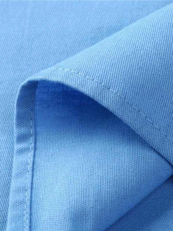 Men's Woven Retro Lace Up Casual Long Sleeve Shirt with Stand Collar