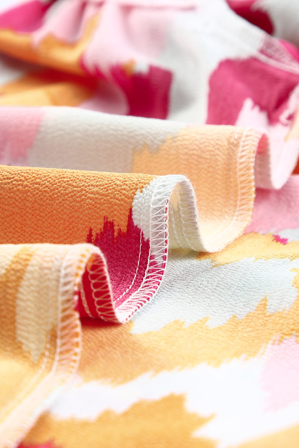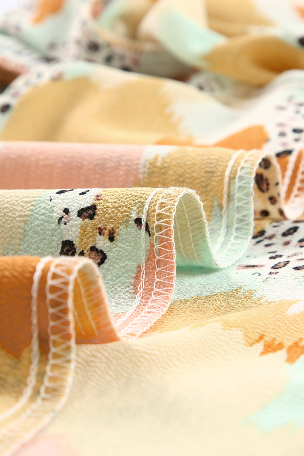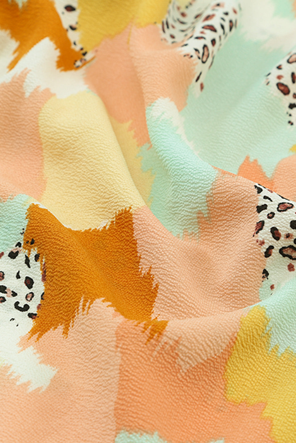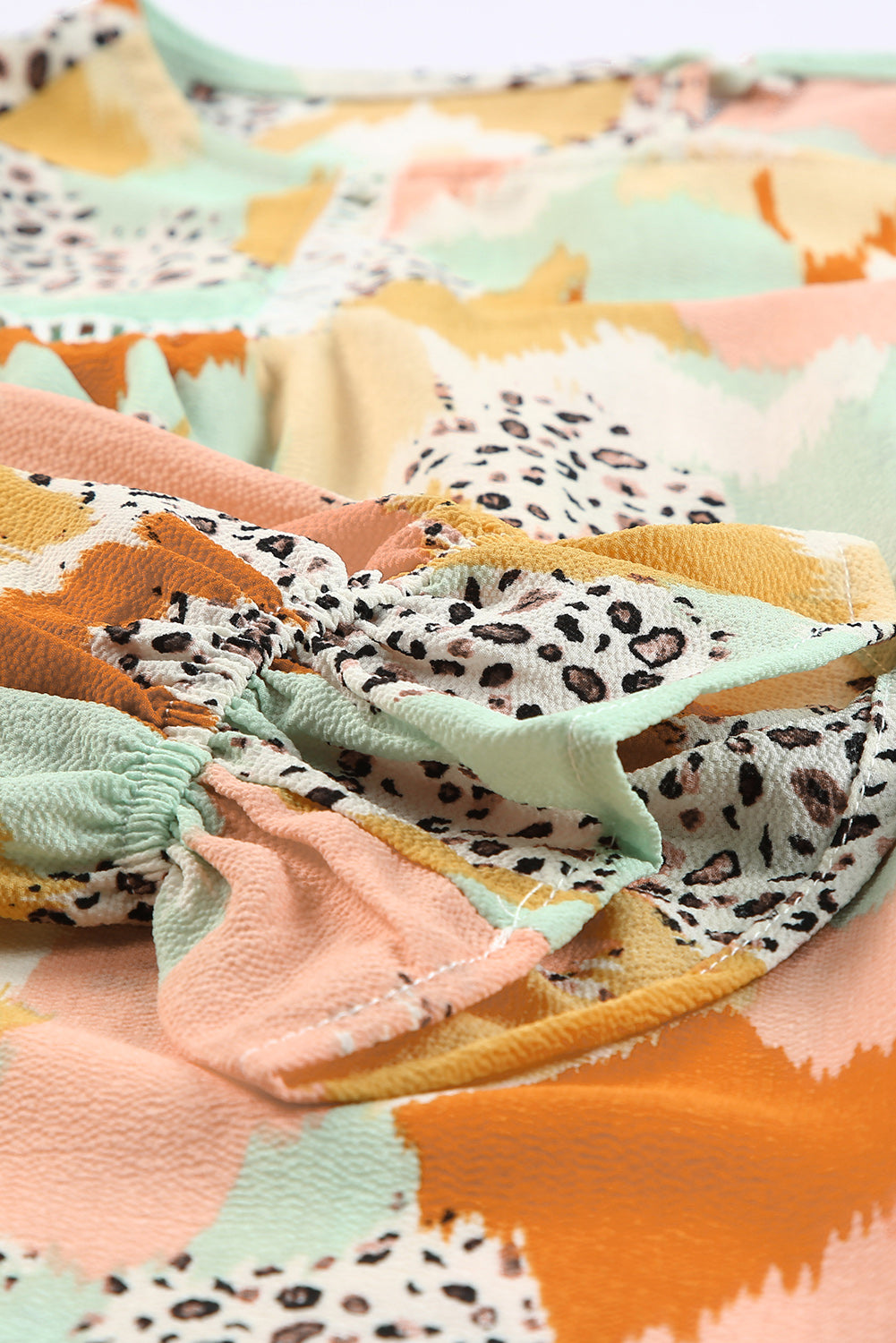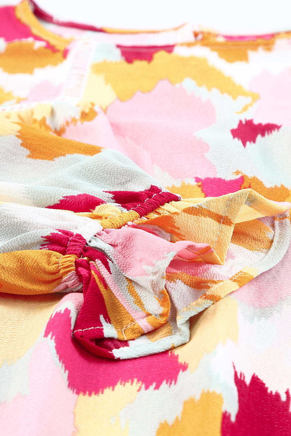 Multicolor Abstract Print Boho Ruffle Puff Sleeve Blouse