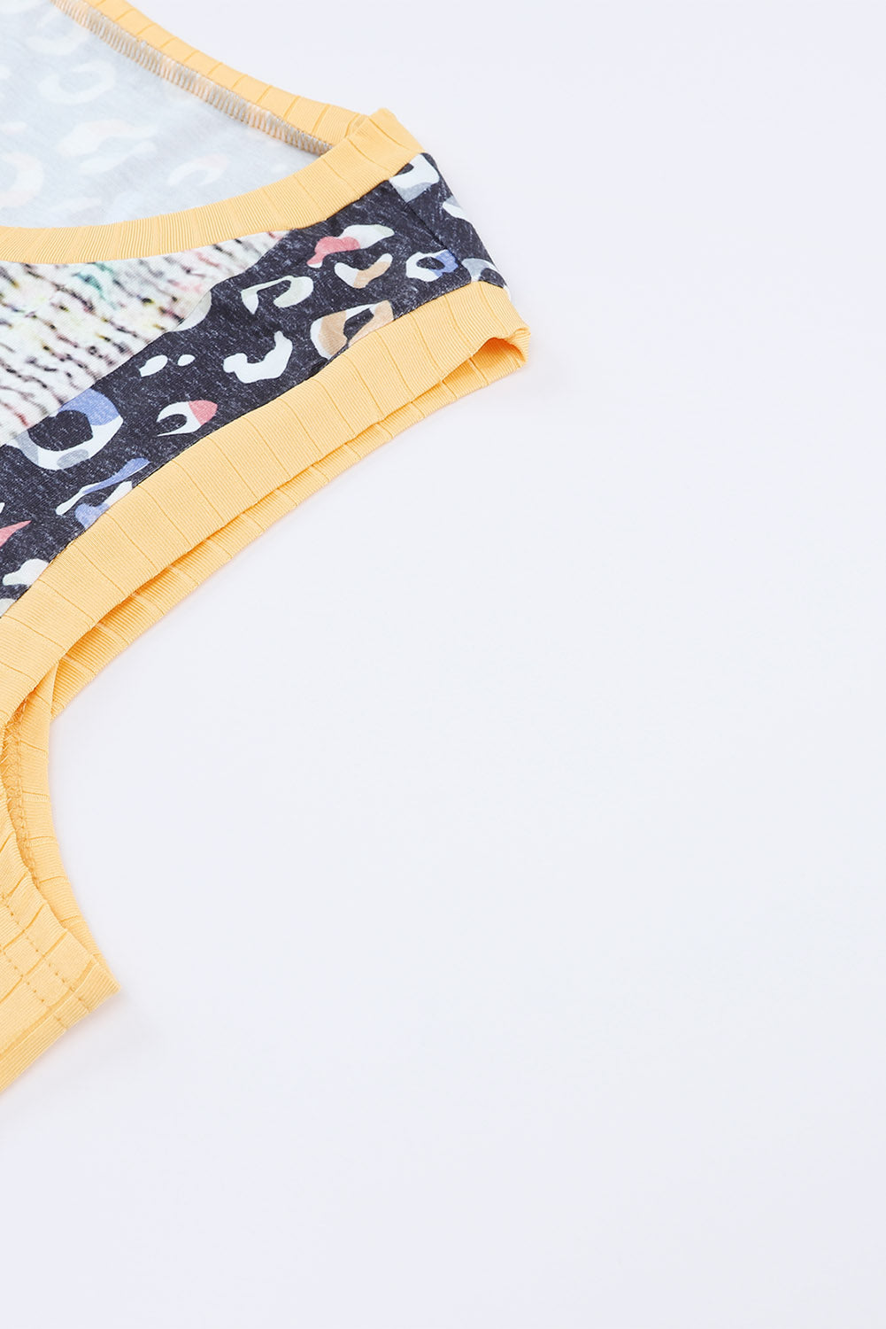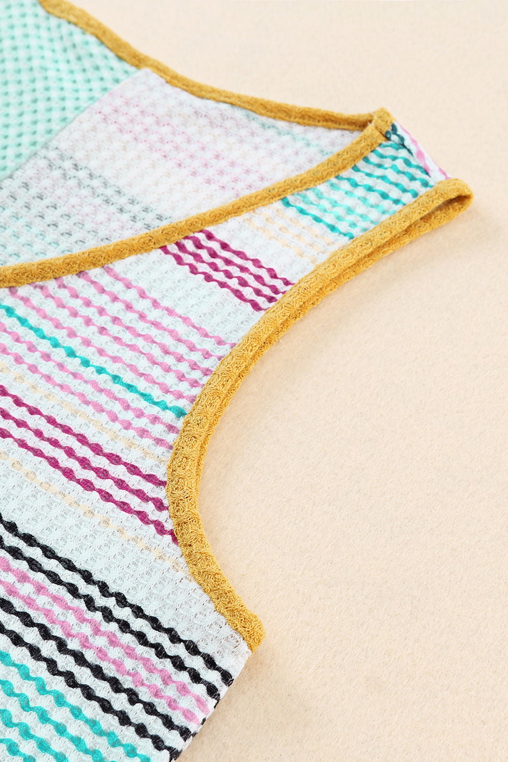 Multicolor Color Block Exposed Seam Casual V Neck Tank Top