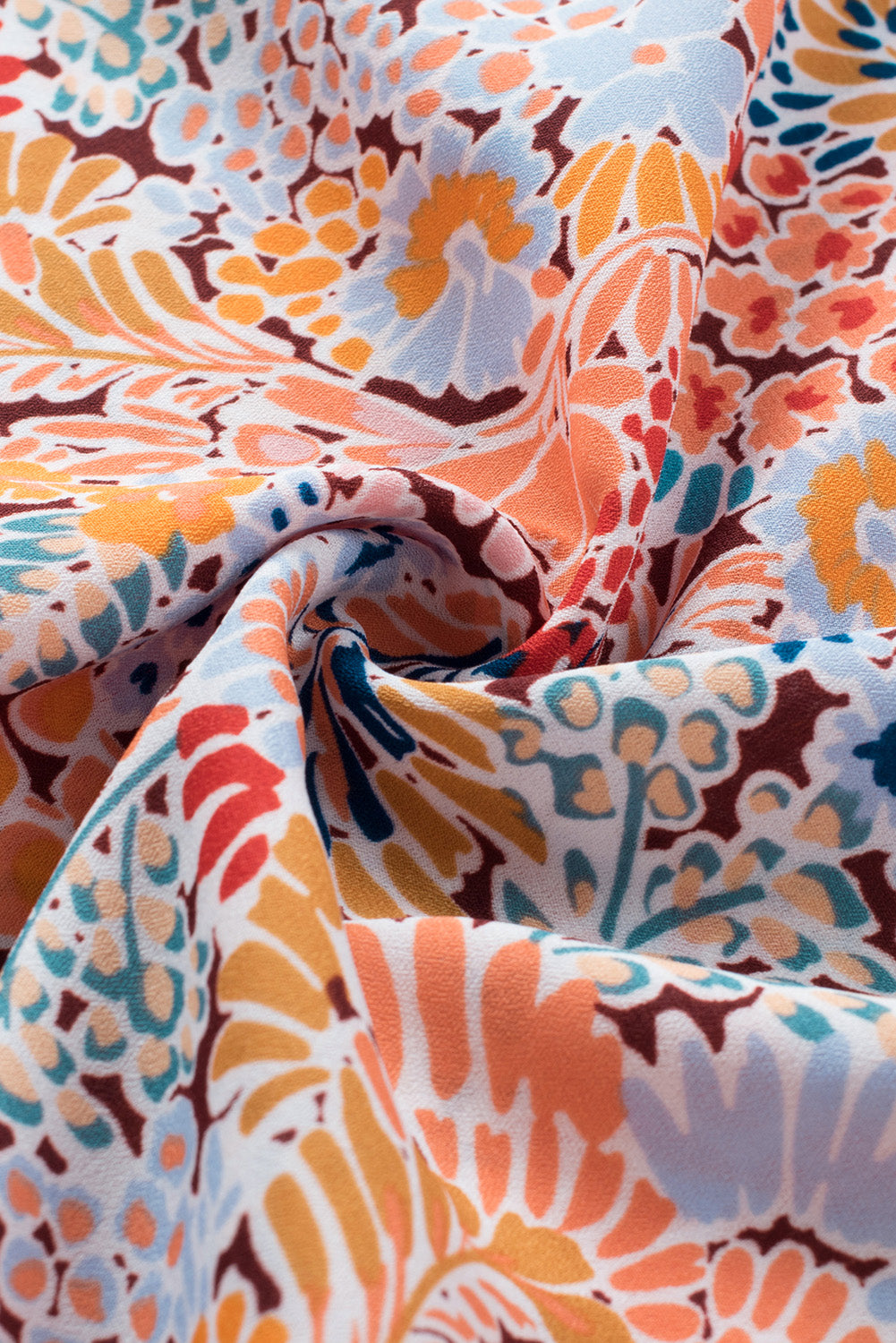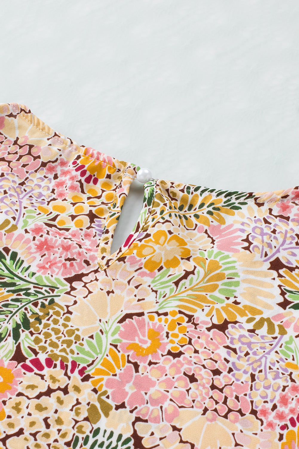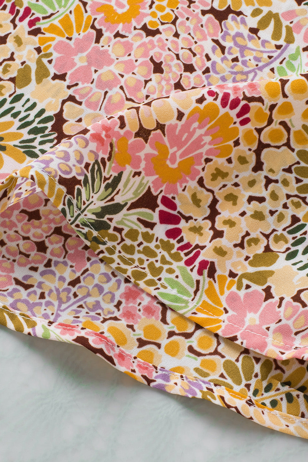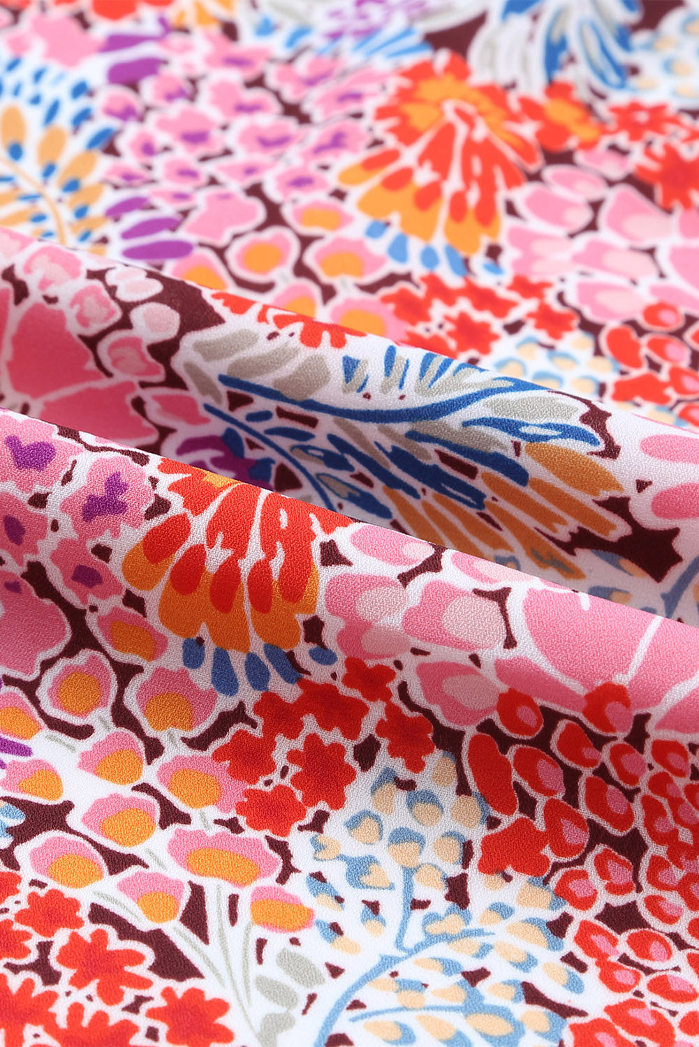 Multicolor Floral Print Smocked Cuffs Long Sleeve Blouse