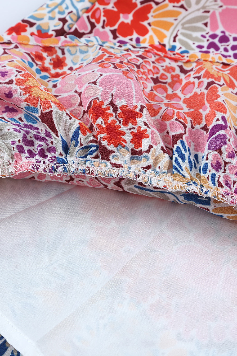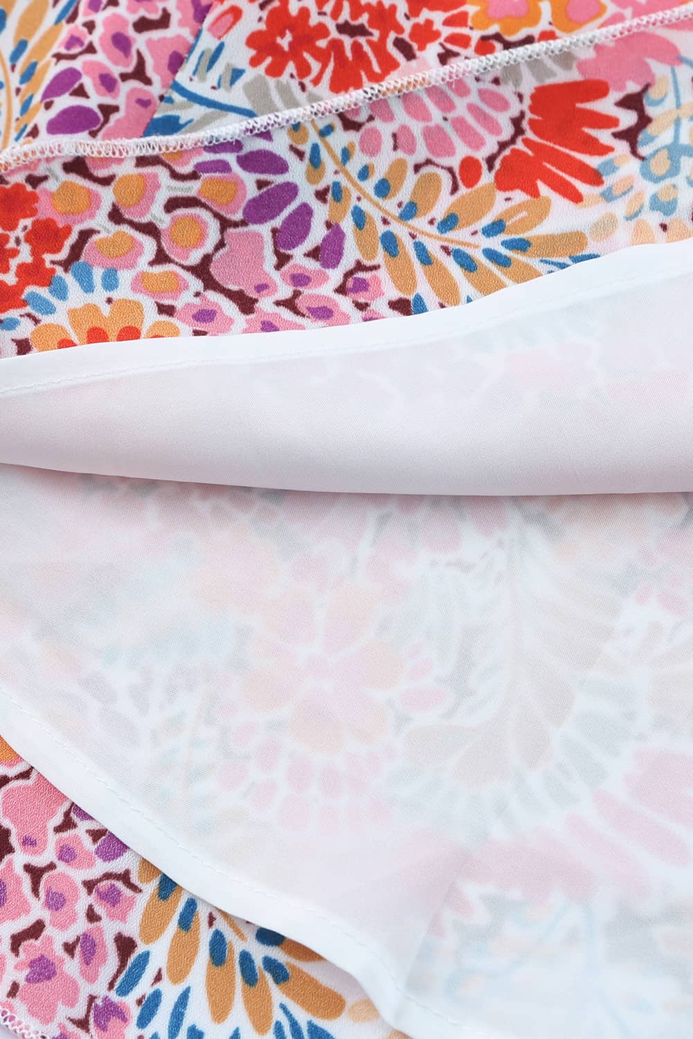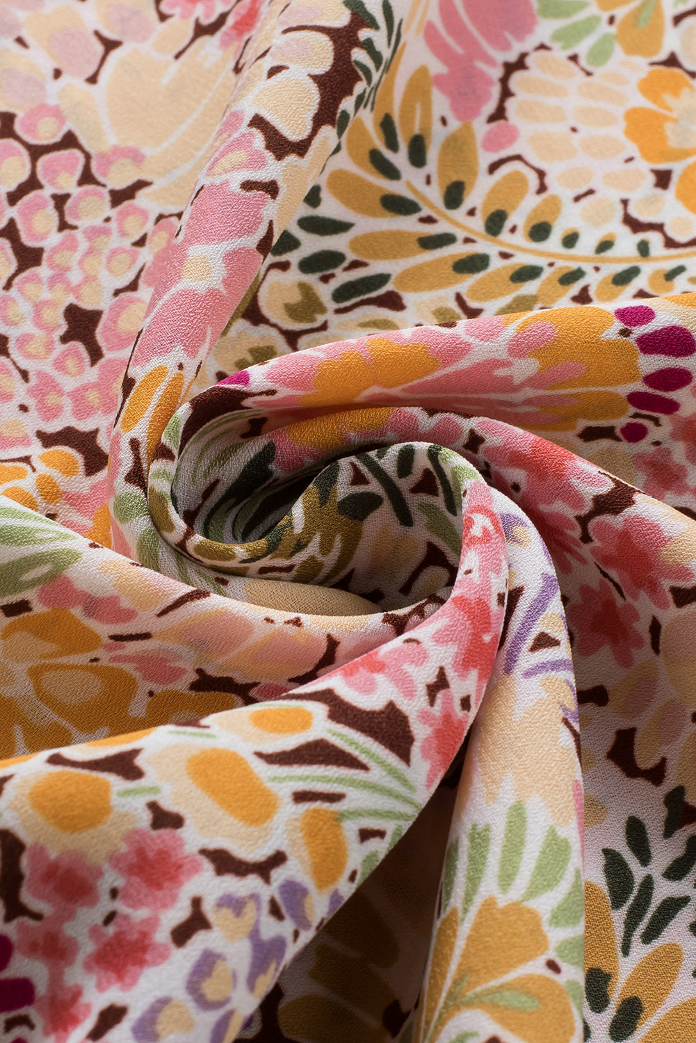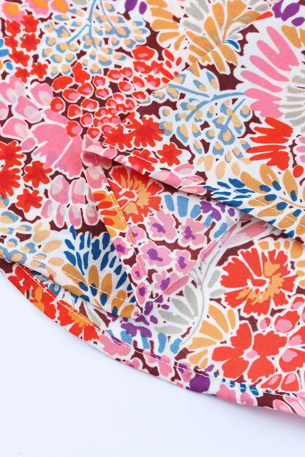 Multicolor Floral Print Smocked Cuffs Long Sleeve Blouse