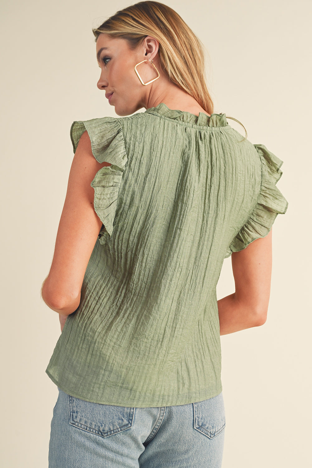 - Embrace sweetness with the adorable flutter shoulder design that exudes charm and cuteness.