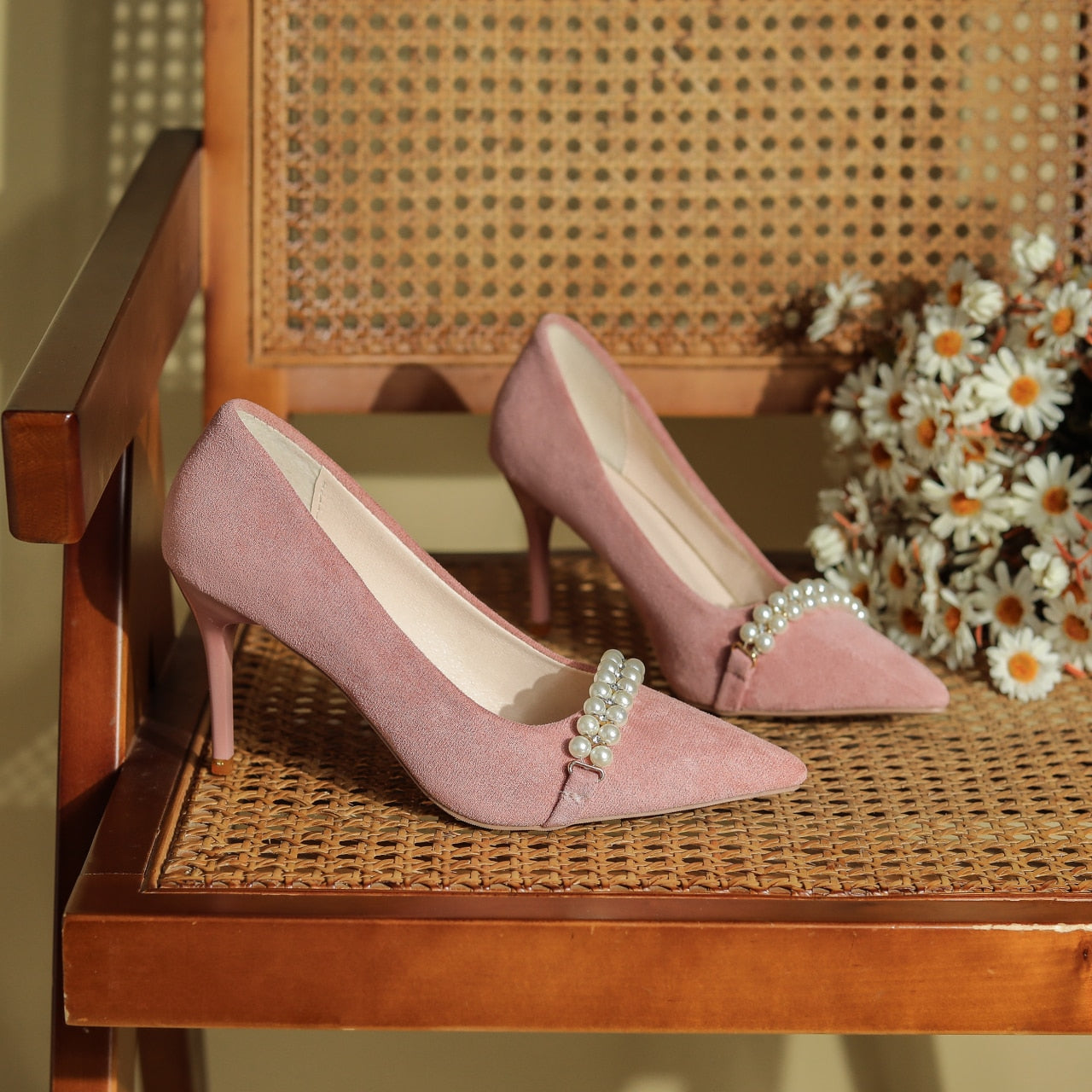 Pointed Toe Black Pumps for Women String Bead High Heels Office Shoe Ladies Comfortable Shallow Shoes Sexy Thin Heels Mujer