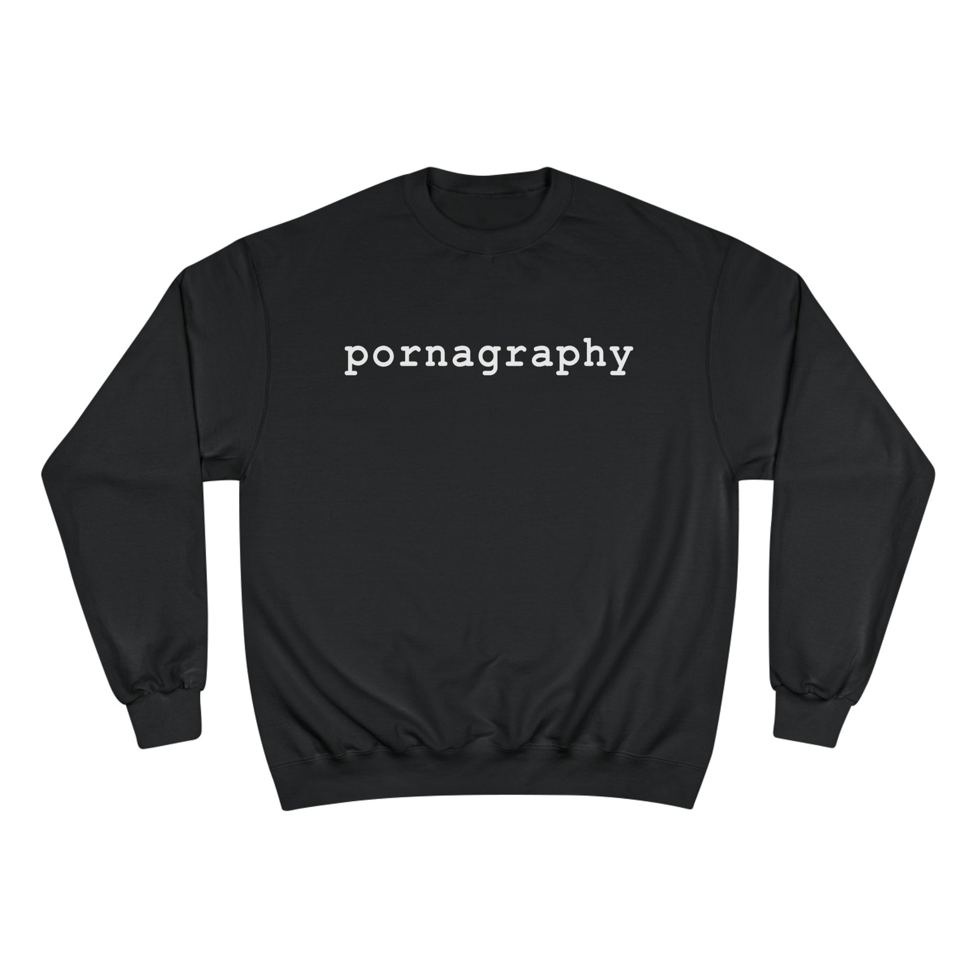 This heavyweight Champion sweatshirt feels like a quiet, confident companion. The black fabric and understated white typewriter-style lettering create a low-key, slightly rebellious look that sits comfortably between streetwear and bookish irony. Slip it on for slow coffee runs, late-night reading sessions, or conversations that wander into awkward honesty — it keeps you warm without shouting. The fit is relaxed and easy, sleeves gather neatly at the ribbed cuffs, and the small “C” sleeve logo adds a subtle mark of quality. It’s for people who prefer their statements dry, clever, and wearable every day.