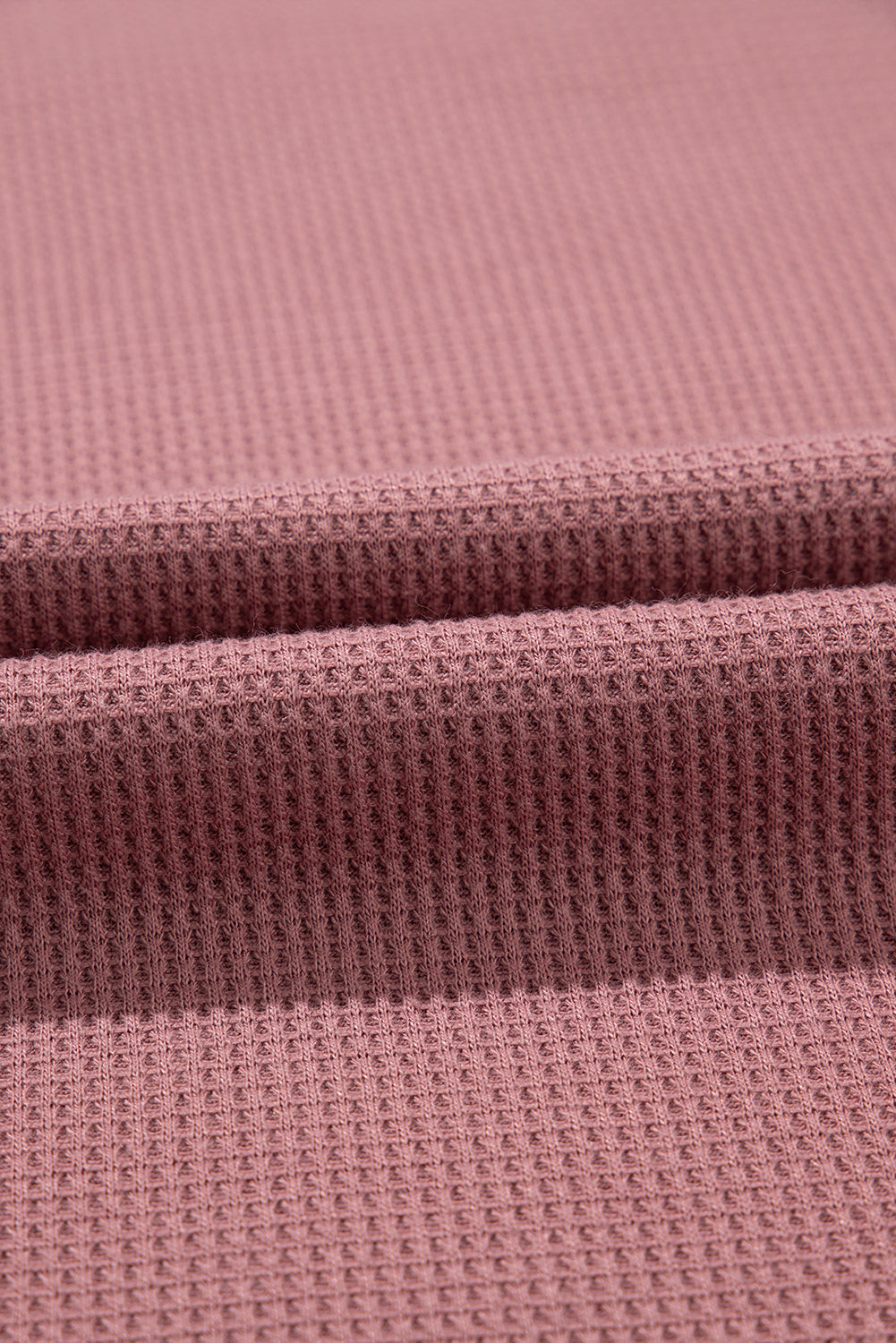 Rose Exposed Seam Drop Sleeve V Neck Waffle Textured Top